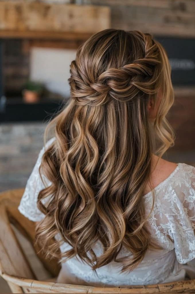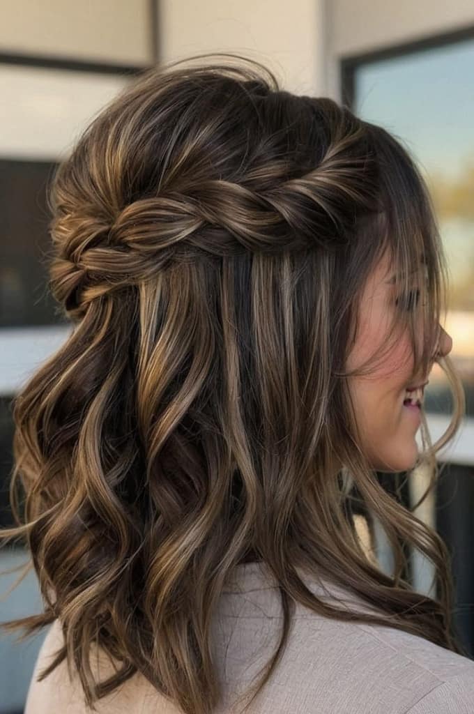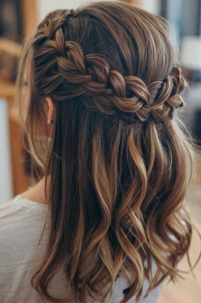 Combine the best of both worlds by braiding the top half of your hair while letting the rest flow freely.