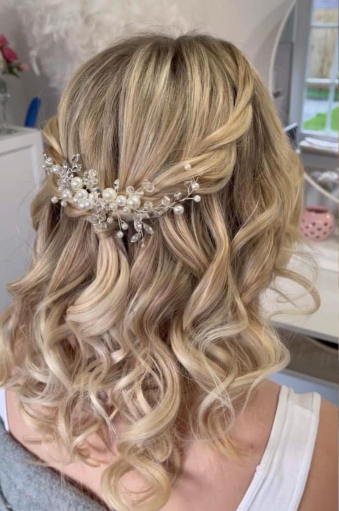 Product Recommendation: Try DevaCurl Ultra Defining Gel for curl definition and complement with delicate floral clips from Flower Hair Accessories.